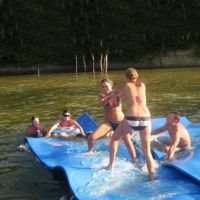 We purchased the WaterMat Plus Floating Mat for my grandson's birthday party at the lake and everybody had a blast! We were very excited as to how easy it was to just roll out on the water and then the fun begain. We even had people stopping by to ask us about the water mat. After the party we just pulled it out on the pier and let it dry and then we rolled it up - so much better than the inflatable water toys, you don't have to let the air out and then air it back up. Just roll the mat up!