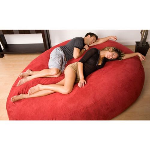 Zak Cocoon Sleeper bean bag bed from Foam Labs. Lush pebble fabric. When flat, it is as big as a King size bed, comfortable enough to sleep two people. Extra large designer bean is perfect as a large bed, great for two people sitting or just taking a nap. When you turn it on its side, it's a cocoon literally that you will sink in comfort. Envelop yourself in an ergonomic lounge, legs up, neck supported, totally in sync with your every movement. When you flip it up, it becomes a retro beanbag style chair ready to kick back and snuggle with your honey. Lush microfiber, microsuede or soft cotton twill covers zip-off for easy machine washing. Underneath a nylon rip-stock liner keeps the hull of shredded urethane foam moisture proof and in-place. Foam is shipped in vacuum reduced capsules to save on freight. 7 feet by 6 feet in size and 2 feet high when flat. Made in USA.