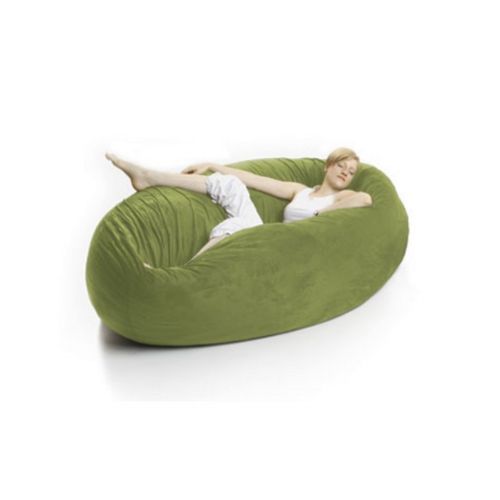 Zak Cocoon multiple use bean bag from Foam Labs in apple green. Extra large designer bean bag can be used in three different ways. When flat, it's a round crash pad perfect for hanging out, playing with the kids, watching TV or just dozing off. When you turn it on its side, it's a cocoon literally that you will sink in comfort. Envelop yourself in an ergonomic lounge, legs up, neck supported, totally in sync with your every movement. When you flip it up, it becomes a retro beanbag style chair ready to kick back and snuggle with your honey. Larg enough for two people. Lush microfiber, microsuede or soft cotton twill covers zip-off for easy machine washing. Underneath a nylon rip-stock liner keeps the hull of shredded urethane foam moisture proof and in-place. Foam is shipped in vacuum reduced capsules to save on freight. 6 feet in diameter with 12 inches in height when flat.