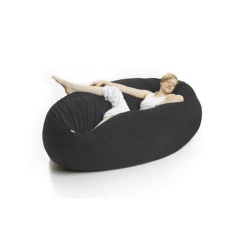 Zak Cocoon multiple use bean bag from Foam Labs in microsuede black. Extra large designer bean bag can be used in three different ways. When flat, it's a round crash pad perfect for hanging out, playing with the kids, watching TV or just dozing off. When you turn it on its side, it's a cocoon literally that you will sink in comfort. Envelop yourself in an ergonomic lounge, legs up, neck supported, totally in sync with your every movement. When you flip it up, it becomes a retro beanbag style chair ready to kick back and snuggle with your honey. Larg enough for two people. Lush microfiber, microsuede or soft cotton twill covers zip-off for easy machine washing. Underneath a nylon rip-stock liner keeps the hull of shredded urethane foam moisture proof and in-place. Foam is shipped in vacuum reduced capsules to save on freight. 6 feet in diameter with 12 inches in height when flat.