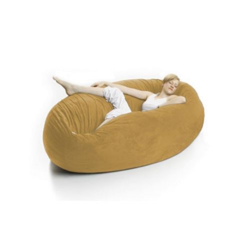Zak Cocoon multiple use bean bag from Foam Labs in yellow. Extra large designer bean bag can be used in three different ways. When flat, it's a round crash pad perfect for hanging out, playing with the kids, watching TV or just dozing off. When you turn it on its side, it's a cocoon literally that you will sink in comfort. Envelop yourself in an ergonomic lounge, legs up, neck supported, totally in sync with your every movement. When you flip it up, it becomes a retro beanbag style chair ready to kick back and snuggle with your honey. Larg enough for two people. Lush microfiber, microsuede or soft cotton twill covers zip-off for easy machine washing. Underneath a nylon rip-stock liner keeps the hull of shredded urethane foam moisture proof and in-place. Foam is shipped in vacuum reduced capsules to save on freight. 6 feet in diameter with 12 inches in height when flat.