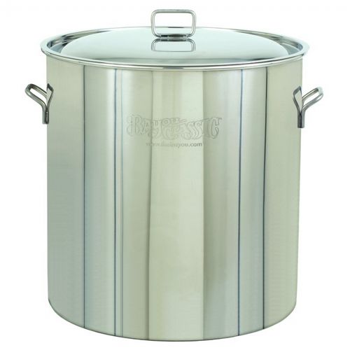 Stockpot & lid - 122 Qt stainless steel122. These pots are made of 304 stainless steel. They are great for your indoor or outdoor chef, and they are one of the most versatile pots on the market. It is 21 ¼ inch diameter and 19 inch high. It has a 122 Qt capacity. It has a thickness of 18 gauge steel and comes with a vented lid.