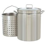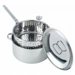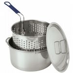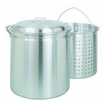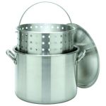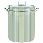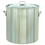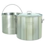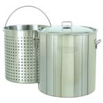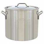 Stockpot & lid - 24 Qt stainless steel. These pots are made of 304 stainless steel. They are great for your indoor or outdoor chef, and they are one of the most versatile pots on the market. It is 12.5" diameter and 12" high. It has a 24 Qt capacity. It also has a thickness of 20 gauge steel and comes with a vented lid.