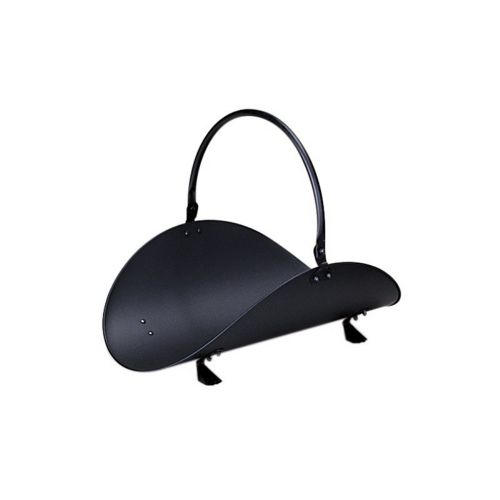 19" black wood basket. It has a black finish and has a basket style with handle. It is 19 inches high. It is a simple wood basket that serves its purpose with a touch of artistry.