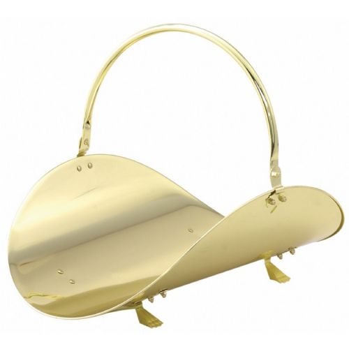 19" polished brass wood basket. It has a polished brass finish and also has a basket style with handle and is 19 inches high. It is a bright shining wood basket that will enhance your fireplace like no other.