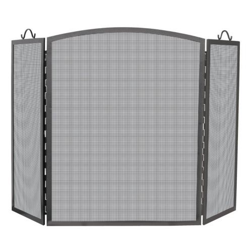 3 Panel olde world iron arch top screen, medium size. It has an olde world Iron finish. It has two folded panels on the left and right. It has an arch on the top with handles on the upper side of the folding panels. It is a 3 panel screen and easy to use. It fits perfectly for all fire places coming in medium and large sizes.