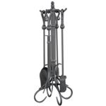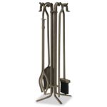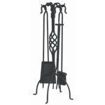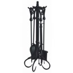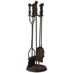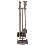 5 Piece venetian bronze fire set with heavy crook handles. It has a venetian bronze finish and it is 30 inches high. It Includes stand, poker, shovel, brush and log lifter. It comes with classic crook handles. It will enhance any fireplace and its surrounding with its compact features.