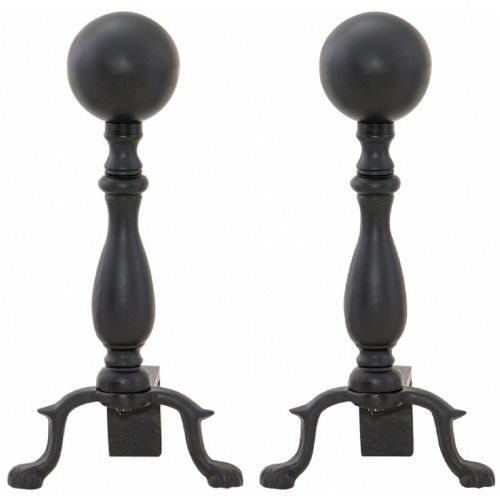 Black ball andiron. It has a black finish and it is 18 inches tall. This andiron is for decorative use only and it is made up of steel construction.