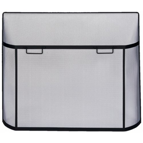 Black curved spark guard. It is made up of black wrought iron and it is 39 inches wide. It is a spark guard from the black wrought iron collection that will enhance and protect any fireplace area.