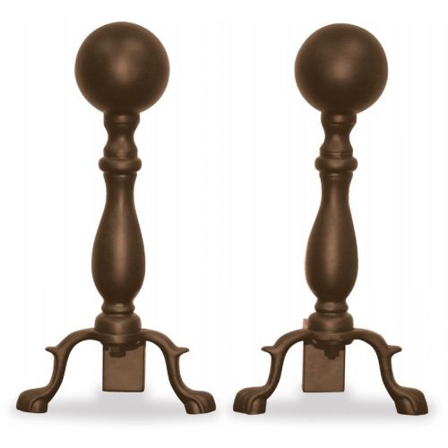 Bronze ball andirons. It has a bronze finish and it is 17 inches high. It also has short shanks and comes in ball tops. It is a nice accessory for any fireplace area.