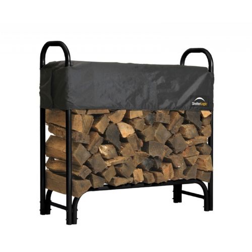 4 ft. / 1.2 m heavy duty firewood rack w/cover. Neatly store your firewood outside your door. It is ready for use without the clutter and great for backyard wood storage. It provides year round protection, and seasoning firewood. It holds holds ⅕ Cord / .7 cubic meters. It is a complete wood storage rack and cover in one. It has easy assembly, all steel frame rack with black powder coat finish and keeps wood off of the ground eliminating bugs, mold growth, and rotting. It has an open air design delivers excellent ventilation, perfect for seasoning firewood. Its waterproof cover adjusts to fit split wood up to 24" / 61 cm in length. Its adjustable cover slides up and down to fit height of wood stack.