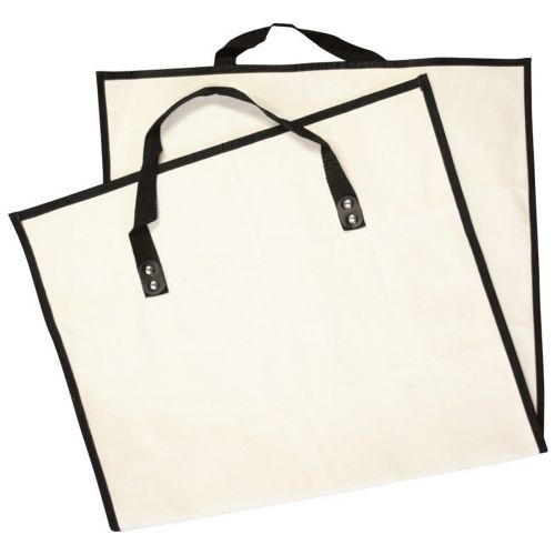 Heavy weight canvas log tote. It is a canvas log tote and it has heavy weight handles. It is 18.75 inches high and 34 inches wide.