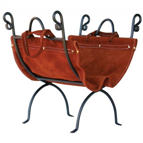 Olde World Iron Log Holder with Suede Leather Carrier