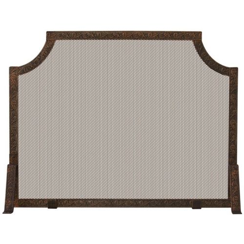 Single panel antique copper patine embossed screen. Its color and size fits most fire places. It has designs on its frame and it is durable.