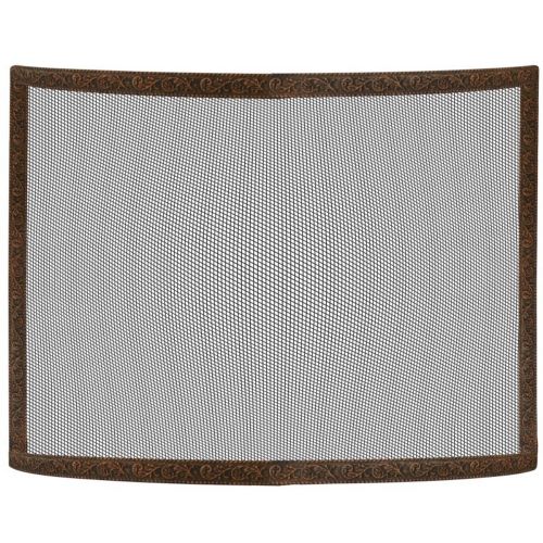 Single panel bowed antique copper patine embossed screen. Its color and size fits most fire places. It has designs on bowed upper and lower frames and it is durable.