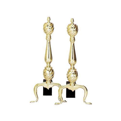 Solid brass twist andirons. It has a solid brass construction and it comes in a polished brass finish. It is only for decorative use. It is 19 inches tall. These decorative purpose andirons adds a classy look to any fireplace area.