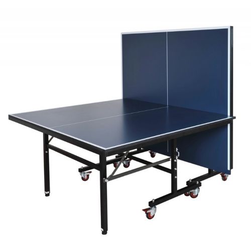 Have a blast with the Carmelli™ Back Stop Table Tennis Table. Back Stop is built with strong 1 ⅜" powder coated steel legs that make this table extremely stable and easy to play. The high grade 3" locking wheels make moving Back Stop quick & easy. The heavy duty ¾" thick MDF playing surface is coated with 16 layers of high quality coating that ensures a uniform, consistent bounce. The table folds at the center for individual practice. Both ends of the table fold up for compact storage when not in use. An easy to use, unique safety mechanism locks the table during normal play or storage. Back Stop comes complete with 2 table tennis paddles and 2 balls.
