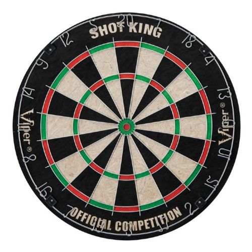 Enjoy a quality game of darts with the shot king sisal dart board. Made of superior grade self healing sisal fibers, this tournament style board features a moveable metal number ring so you can easily rotate your board and extend playing life. The round shaped wires and staple free Bullseye reduce Bounce- Outs and deliver maximum performance. A great board to play on no matter what level your game is.