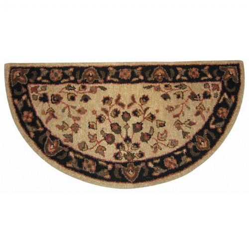 Beige with black hand-tufted 100% wool hearth rug. It is perfect for decorative use around any fireplace area. It is made up of 100% wool.