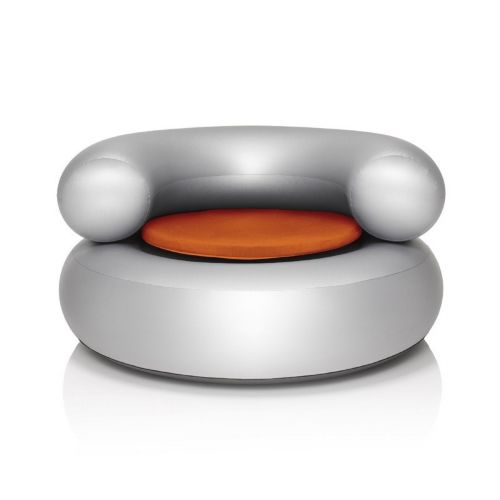 Ch-air Silver Incl. Pillow Orange by Fatboy®. People like to think of me as their inflatable, portable majestic throne -- pack up, blow up and take your throne with you everywhere you go! What does it feel like to be blown up into a sleek and stylish chair of air? It feels ch-awesome! I come in three different color options and you can dress me up with a pillow that comes in six different colors! You will feel like royalty sitting on me!