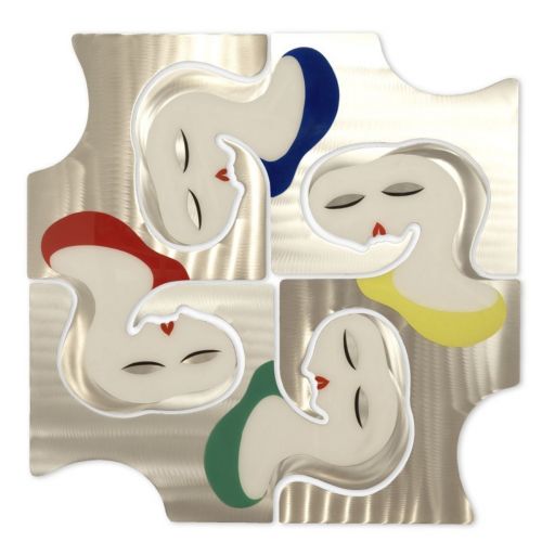 Paloma puzzle wall graphic. It is a modern style wall art by Nova Lighting. It is made of acrylic and it has a brushed aluminum finish. This is a wall graphic is a modern presentation of colorful expressionist art that enhances a living area with a flash.