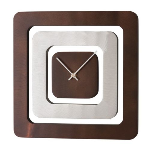 Perimeter wall clock. It is a modern style clock by Nova Lighting. It is made of metal and acrylic. It has root beer, brushed aluminum finish along with clear acrylic color. This wall clock is a basic clock with a modern look.