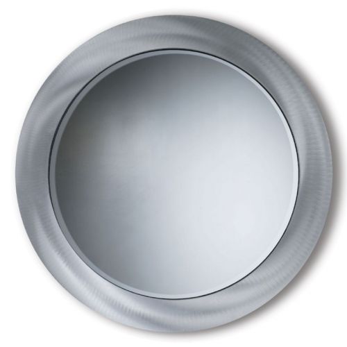 Roundy wall mirror. It is a modern style mirror by Nova Lighting. It is made of wood and it has a brushed aluminum finish. This wall mirror is a basic modern style wall mirror that reflects the light as it is.