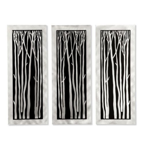 Silver birch wall graphic. It is a modern style wall art by Nova Lighting. It is made of acrylic and metal. It has a brushed aluminum finish along with a black color. This is a wall graphic that gives an in-depth artistic look to it when stared.