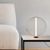 Spokes Round Shade Desk Lamp | Ambient Light | Satin Nickel. Add a flair of innovative style and conscientious design with the Spokes Table Lamp Round Small Satin Nickel Piano wire forms the modern sculptural cage, illuminated by a central LED tubular diffuser for soft, ambient light. Bring a modern sculptural element into your lighting design with the Spokes Table Lamp Round Small Satin Nickel. Soft, ambient light emanates from a central tubular LED diffuser, perfect for adding a subtle glow to your contemporary decor. Encircling the LED light is an elliptical cage constructed of piano wire for an unexpected element. This LED lamp is a perfect complement at the bedside or on an accent table.
