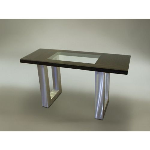 Venturi console table. It is a modern style accent furniture by Nova Lighting. It is made of wood, metal and glass. It has an aluminum walnut finish. It is a basic modern, easy to use and clean console table.