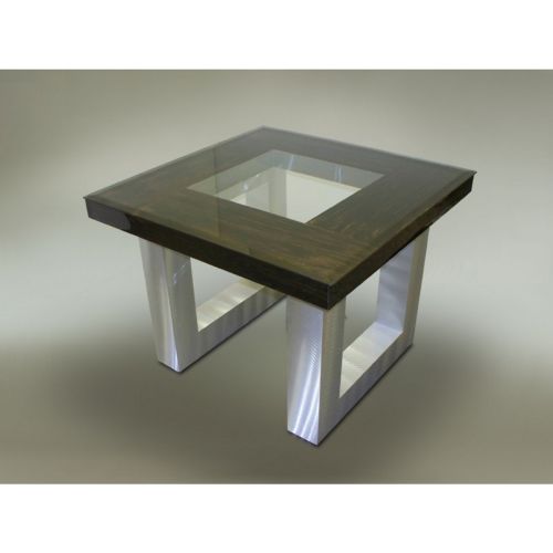 Venturi end table. It is a modern style accent furniture by Nova Lighting. It is made of wood, metal and glass. It has an aluminum walnut finish. It is a basic modern, easy to use and clean endl table.