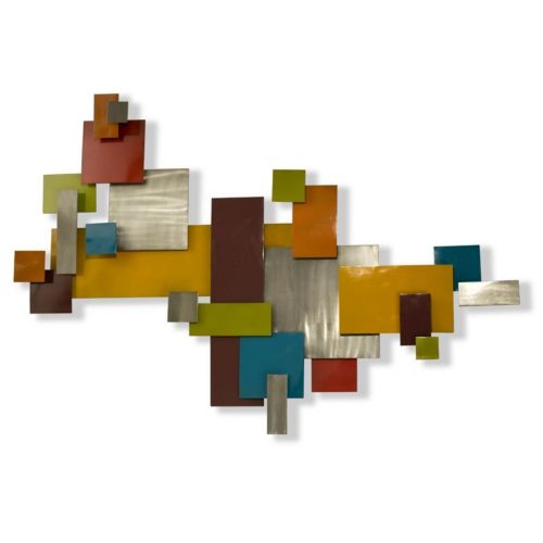 Viete wall sculpture. It is a casual contemporary style wall art by Nova Lighting. It is made of steel and it is multiple colored.