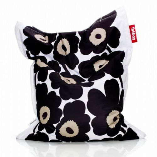 Fatboy Marimekko designer beanbag chair in unikko black color. Great for those of us that still have some growing to do. Junior version of the Original Fatboy beanbag lounger. You can sit on it, lay and relax or just lounge on it! It's called Fatboy® ! This is a new modern alternative to the classic beanbag from the past. It deserves a prominent place in any dormroom or livingroom. Fatboy® Junior is made with polyester fabric and has a pvc coating to make them water resistant, stain resistant and easy to clean. Ultimate beanbag is filled with virgin polystyrene beads to allow for the ultimate lounging experience! Dimensions: 40 inches by 50 inches. Designed by Jukka Setälä from Finland.