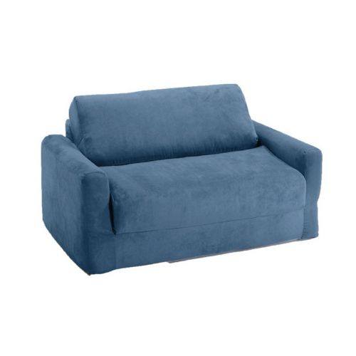 The Sofa Sleeper in blue micro suede is a great seat for movie time, reading, and playing games, and it offers enough space to share with a friend. Flip it open for nap time, or use it as a spare bed during sleep overs. The removable cover is washable, and a layer of fiber is included on the seating surfaces to keep the fabric tight for a long time. This sofa is meant to withstand lots of use from kids.