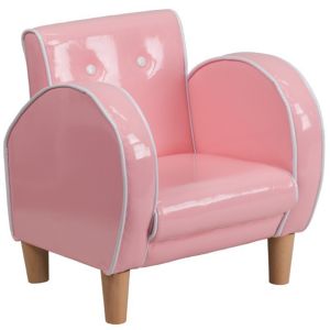 Perfect size seating for toddlers, this cute comfortable chair even comes with a handle just right for little hands. Safe and sturdy foam insert, slip covered for easy care, this chair pleases parents while little girls and boys delight in having furniture that is theirs alone. Comfy Seat measures 12" × 11" and is 6" to the floor. Removable slip cover for easy claening. Proudly made in the USA!