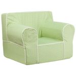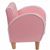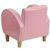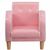 This stylish pink chair has a durable foam insert covered in a pink vinyl upholstery and white vinyl piping. It has a button tufted back, curved arms and round wooden feet. The solid pink color and white trim is easy to mix and match with other furniture or linens. The low seat height and smaller footprint make it ideal for a younger child's room. It's lightweight design make it easy to move from place to place. The vinyl cover is easy to clean with just a damp cloth. The chair is ideal for children ages 3-7.