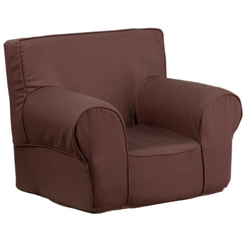 This small brown kids chair has a durable foam insert covered in a cotton twill upholstery. The solid brown color is very easy to mix and match with other furniture or linens. The lower seat height and smaller footprint make it ideal for a younger child's room. It's portable lightweight design and carrying handle make it easy to move from place to place. The slipcover is removable and machine washable or you can spot clean it with a damp cloth for small spills. Please wash with cold water and do not use bleach.