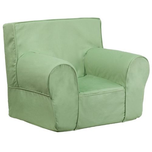 This small green kids chair has a durable foam insert covered in a cotton twill upholstery. The solid green color is very easy to mix and match with other furniture or linens. The lower seat height and smaller footprint make it ideal for a younger child's room. It's portable lightweight design and carrying handle make it easy to move from place to place. The slipcover is removable and machine washable or you can spot clean it with a damp cloth for small spills. Please wash with cold water and do not use bleach.