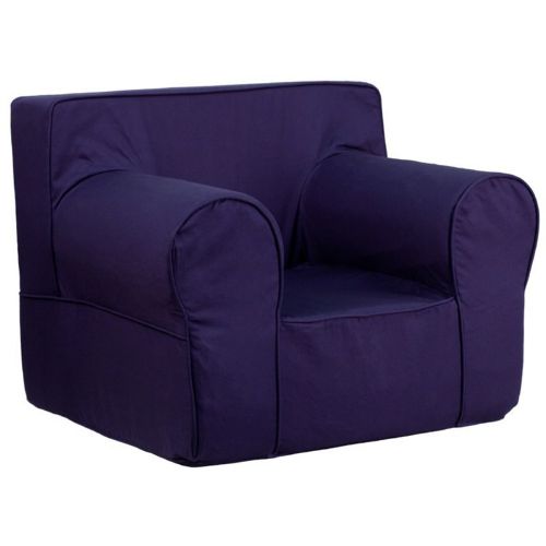 This comfy blue kids chair has a durable foam insert covered in a cotton twill upholstery. The solid blue color is very easy to mix and match with other furniture or linens. The lower seat height and smaller footprint make it ideal for a younger child's room. It's portable lightweight design and carrying handle make it easy to move from place to place. The slipcover is removable and machine washable or you can spot clean it with a damp cloth for small spills. Please wash with cold water and do not use bleach.