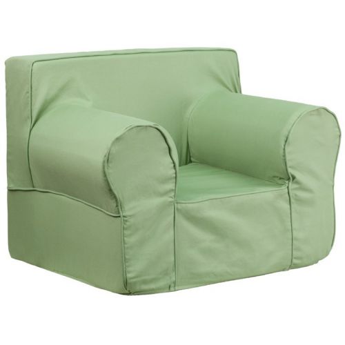 This comfy green kids chair has a durable foam insert covered in a cotton twill upholstery. The solid green color is very easy to mix and match with other furniture or linens. The lower seat height and smaller footprint make it ideal for a younger child's room. It's portable lightweight design and carrying handle make it easy to move from place to place. The slipcover is removable and machine washable or you can spot clean it with a damp cloth for small spills. Please wash with cold water and do not use bleach.