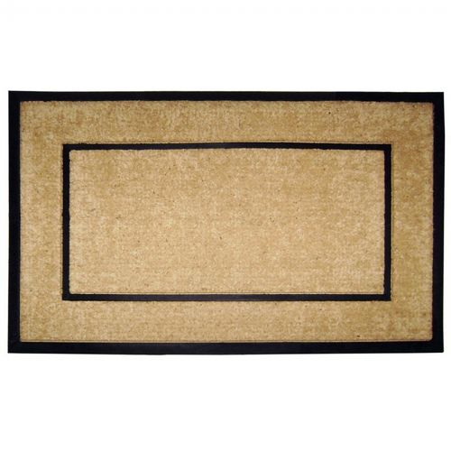 Rectangle coir doormat with black rubber frame measures 30" × 48". Made from tufted coir fibers in a molded Rubber Mats. Designs are molded in rubber. These striking, durable mats have thousands of coir bristles embedded in a rubber base that help capture and remove dirt and moisture from shoes. The heavy duty non skid rubber backing keeps the coir from shedding and keeps mat in place. These mats bravely stand up to any amount of foot traffic. Rubber coir mats are made from renewable and natural materials, which are environment friendly. Some color transfer may occur onto natural stone, concrete or other surfaces when the mats are excessively exposed to the elements. Slight variations in size and texture are natural and add a special character to the mat.