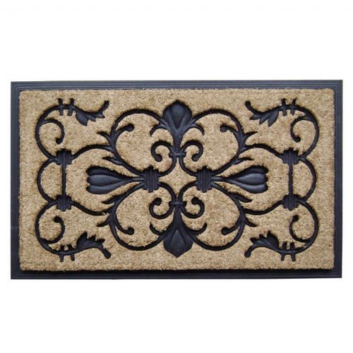 Majesty rectangle coir doormat with black rubber base measures 18" × 30". Made from tufted coir fibers in a molded Rubber Mats. Designs are molded in rubber. These striking, durable mats have thousands of coir bristles embedded in a rubber base that help capture and remove dirt and moisture from shoes. The heavy duty non skid rubber backing keeps the coir from shedding and keeps mat in place. These mats bravely stand up to any amount of foot traffic. Rubber coir mats are made from renewable and natural materials, which are environment friendly. Some color transfer may occur onto natural stone, concrete or other surfaces when the mats are excessively exposed to the elements. Slight variations in size and texture are natural and add a special character to the mat.