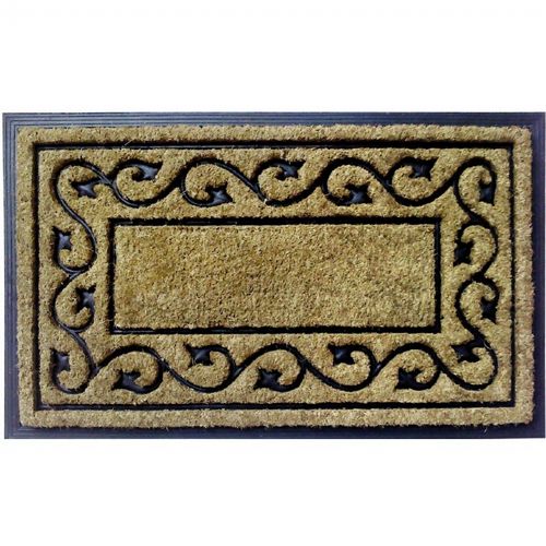 Vine rectangle dirtbuster coir doormat with rubber base measures 18" × 30". Made from tufted coir fibers in a molded rubber mats. Designs are molded in rubber. These striking, durable mats have thousands of coir bristles embedded in a rubber base that help capture and remove dirt and moisture from shoes. The heavy duty non skid rubber backing keeps the coir from shedding and keeps mat in place. These mats bravely stand up to any amount of foot traffic. Rubber coir mats are made from renewable and natural materials, which are environment friendly. Some color transfer may occur onto natural stone, concrete or other surfaces when the mats are excessively exposed to the elements. Slight variations in size and texture are natural and add a special character to the mat.