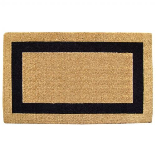 Heavy Duty rectangle shaped doormat with single picture frame in black measures 38" × 60". Made from 100% coir fiber. Coir is a natural fiber extracted from the fibrous husk of coconuts. Tough coir bristles are excellent for scraping dirt off shoes and absorbing moisture. Coir mats are hand-woven by artisans using century old techniques on traditional wooden looms. They are 100% natural, biodegradable, compostable and environmentally friendly. Coir fiber is naturally mold and mildew resistant.