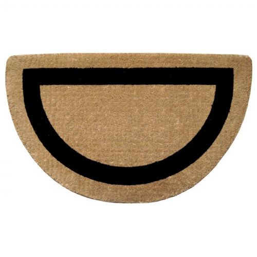 Heavy Duty half round shaped doormat with Blue single picture frame measures 22" × 36". Made from 100% coir fiber. Coir is a natural fiber extracted from the fibrous husk of coconuts. Tough coir bristles are excellent for scraping dirt off shoes and absorbing moisture. Coir mats are hand-woven by artisans using century old techniques on traditional wooden looms. They are 100% natural, biodegradable, compostable and environmentally friendly. Coir fiber is naturally mold and mildew resistant.