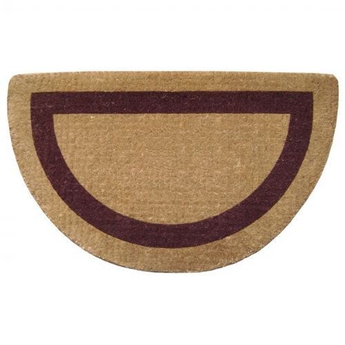 Heavy Duty half round shaped doormat with brown single picture frame measures 22" × 36". Made from 100% coir fiber. Coir is a natural fiber extracted from the fibrous husk of coconuts. Tough coir bristles are excellent for scraping dirt off shoes and absorbing moisture. Coir mats are hand-woven by artisans using century old techniques on traditional wooden looms. They are 100% natural, biodegradable, compostable and environmentally friendly. Coir fiber is naturally mold and mildew resistant.