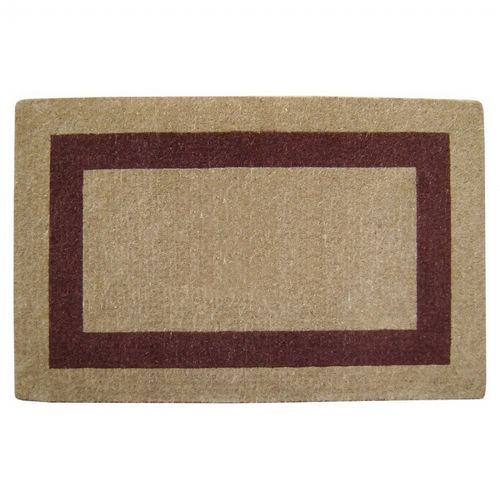 Heavy Duty rectangle shaped doormat with brown single picture frame border measures 38" × 60". Made from 100% coir fiber. Coir is a natural fiber extracted from the fibrous husk of coconuts. Tough coir bristles are excellent for scraping dirt off shoes and absorbing moisture. Coir mats are hand-woven by artisans using century old techniques on traditional wooden looms. They are 100% natural, biodegradable, compostable and environmentally friendly. Coir fiber is naturally mold and mildew resistant.
