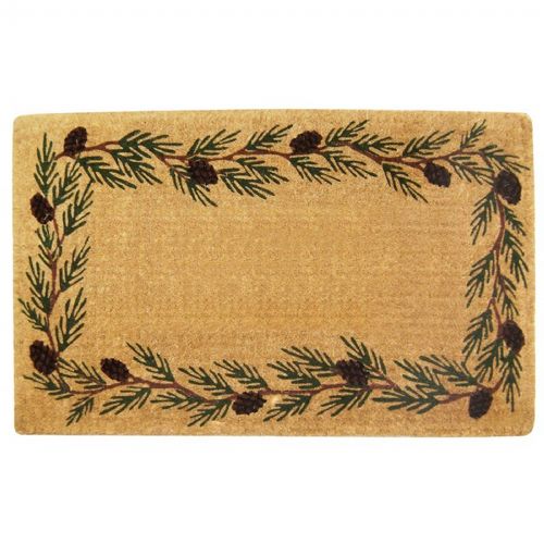 Heavy duty rectangle shaped doormat with evergreen border measures 30" × 48". Made from 100% coir fiber. Coir is a natural fiber extracted from the fibrous husk of coconuts. Tough coir bristles are excellent for scraping dirt off shoes and absorbing moisture. Coir mats are hand-woven by artisans using century old techniques on traditional wooden looms. They are 100% natural, biodegradable, compostable and environmentally friendly. Coir fiber is naturally mold and mildew resistant.