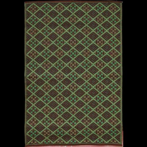 4' × 6' Dark Green outdoor carpet mat by MadMats. Totally durable for outdoors. Made of 98% recycled plastic. Great for patios, outdoor spaces and pool sides. Resistant to rain, snow and sun all year round. Just hose it down with water for cleaning. Colors UV treated and resistant to sun. Sold in one solid piece. Each side is equally stunning. Completely weather proof, mold and rot resistant.