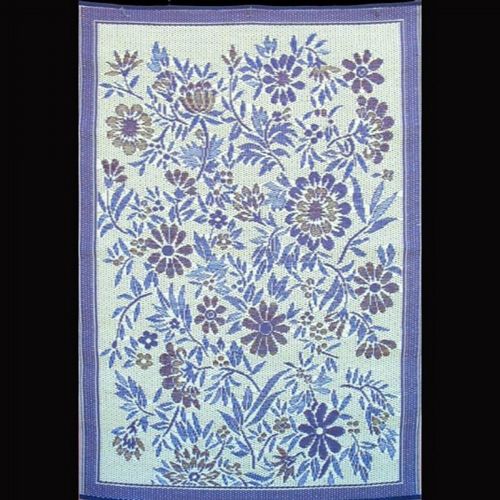 4' × 6' Wildflower outdoor carpet mat in Egg Plant color. Totally durable for outdoors. Made of 98% recycled plastic. Great for patios, outdoor spaces and pool sides. Resistant to rain, snow and sun all year round. Just hose it down with water for cleaning. Colors UV treated and resistant to sun. Sold in one solid piece. Each side is equally stunning. Completely weather proof, mold and rot resistant.